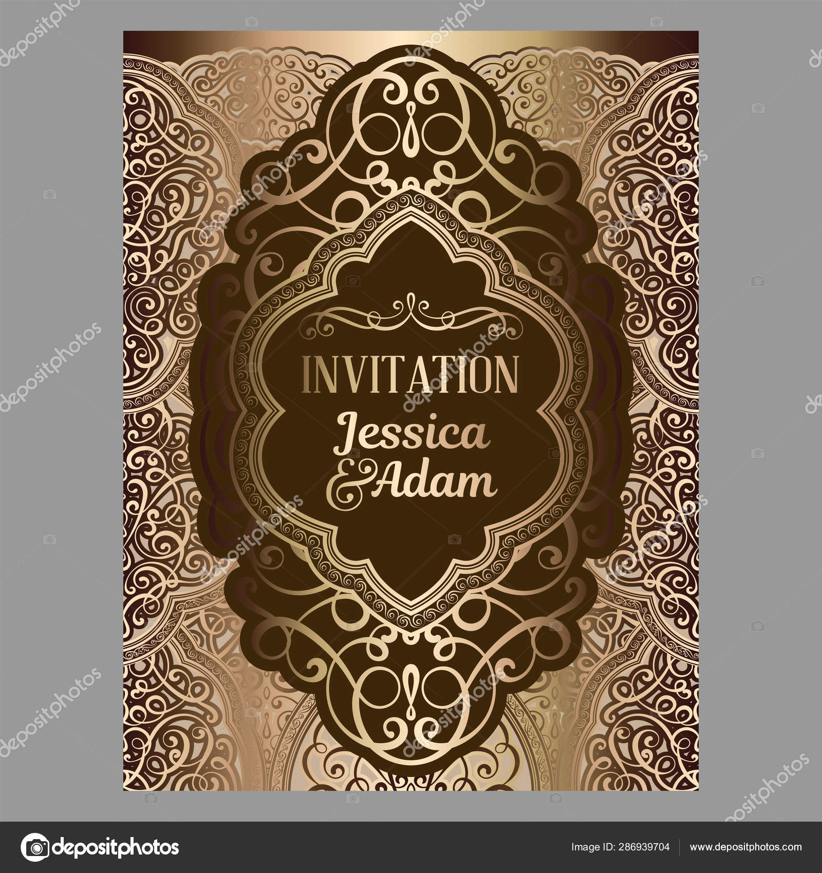 Tarjeta De Invitacion De Boda Con Bronce Y Oro Brillante Follaje Rico Oriental Y Barroco Fondo Islamico Adornado Para Su Diseno Islam Arabe Indio Dubai Vector De Stock C Miamilky 286939704