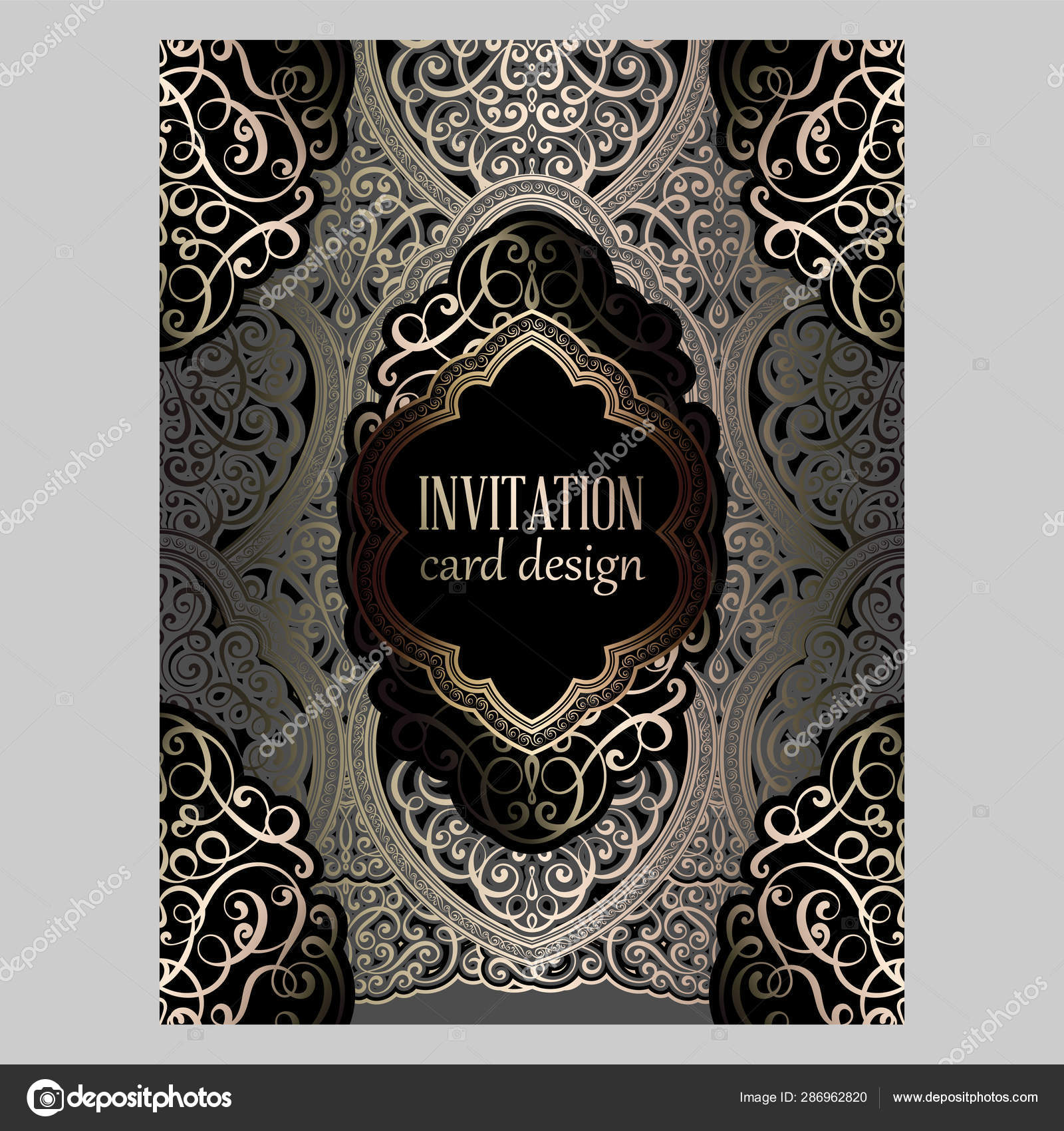 Tarjeta De Invitacion De Boda Con Oro Gris Y Oro Brillante Follaje Rico Oriental Y Barroco Fondo Islamico Adornado Para Su Diseno Islam Arabe Indio Dubai Vector De Stock C Miamilky 286962820