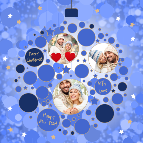 Kerst en nieuwjaarskaart met eigen foto's in de vorm van kerstbal