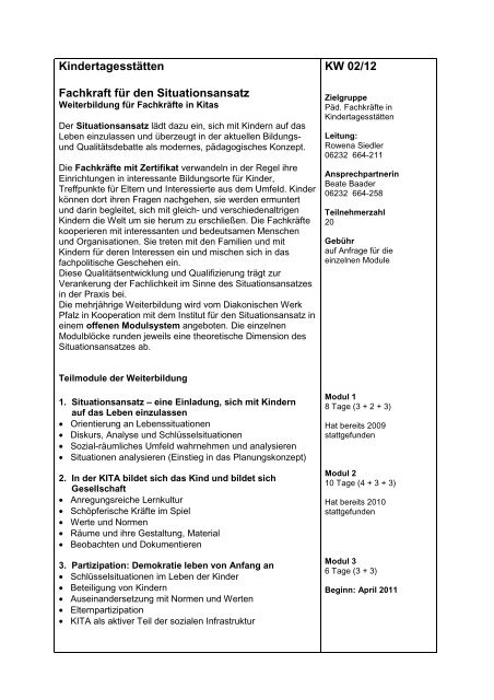 Fachkraft für den Situationsansatz - Diakonisches Werk Pfalz